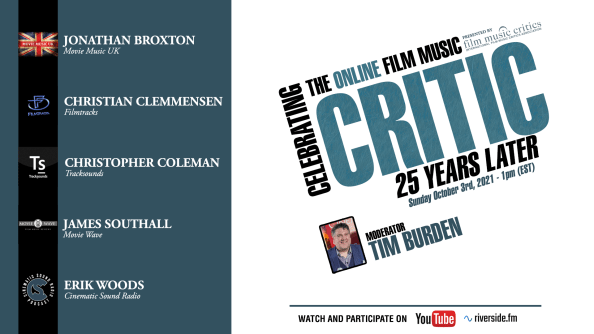 Join us on Sunday October 3rd 2021 at 1:00pm EST (10:00am PST, 6:00pm BST) via the live stream on the IFMCA Youtube Channel at https://www.youtube.com/c/InternationalFilmMusicCriticsAssociation, where you can watch the celebration, post questions to the panel, and more!
